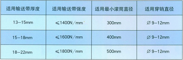 適用輸送帶寬度規(guī)格有:800mm、1000mm、1200mm、1400mm四種規(guī)格。